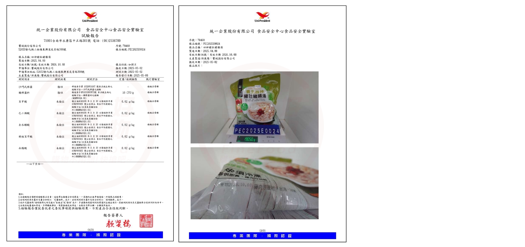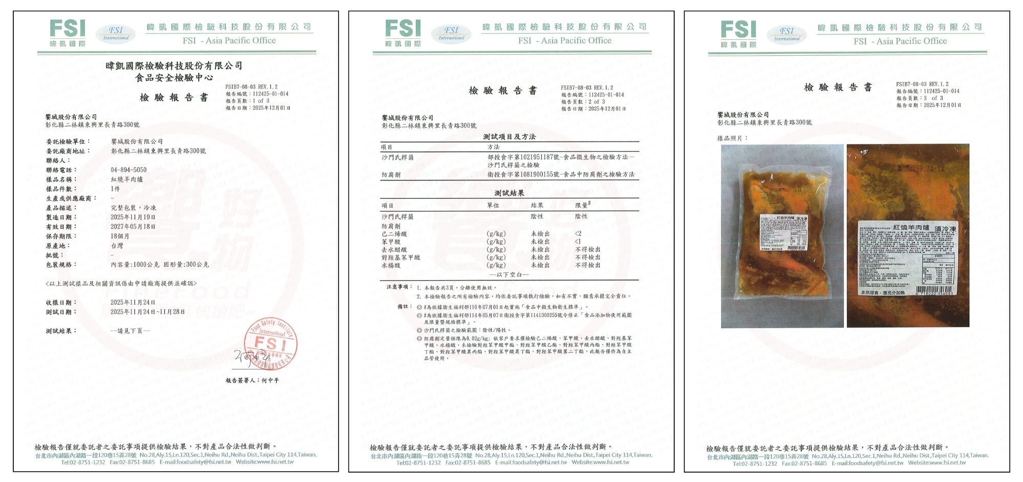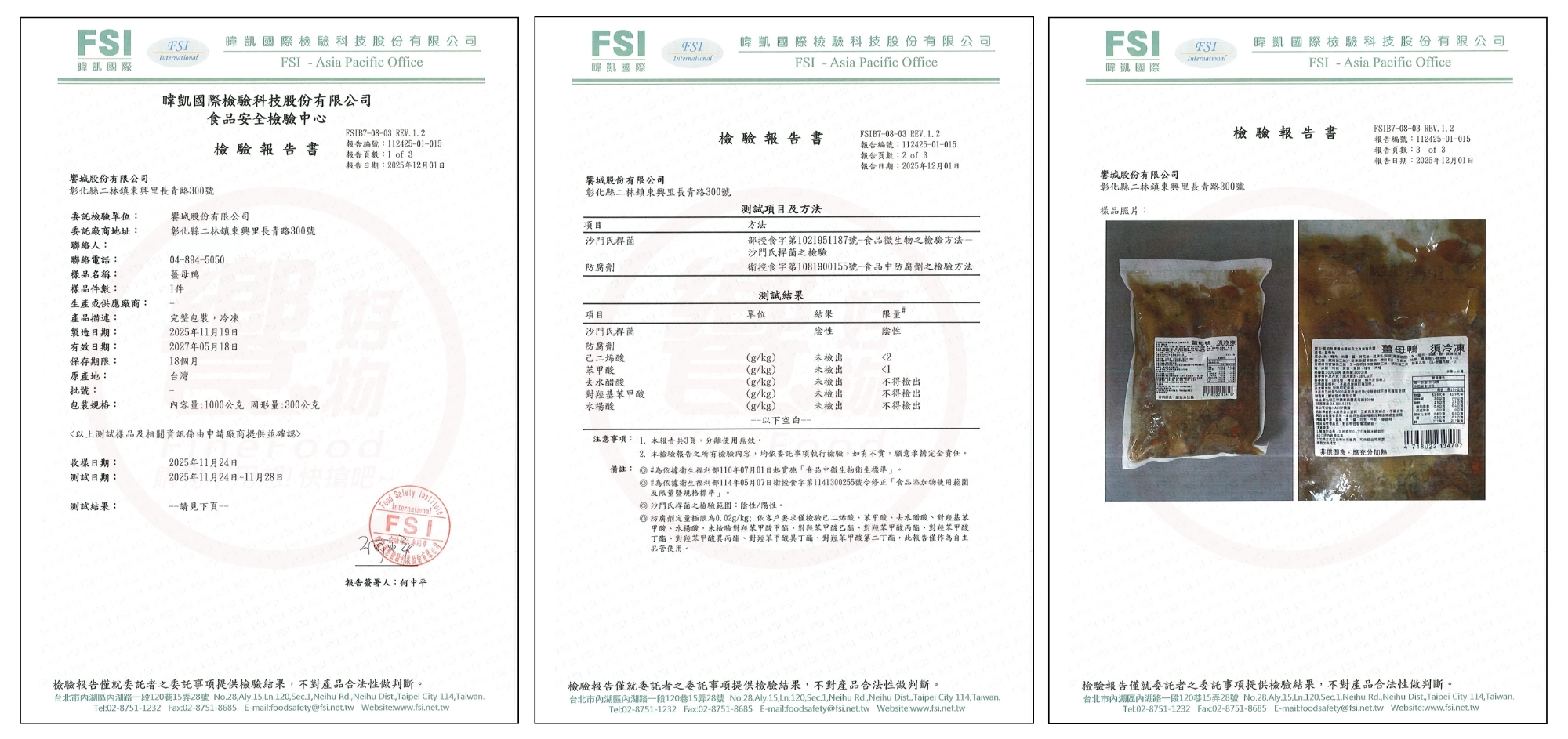 {饗城冷凍湯品}檢驗報告