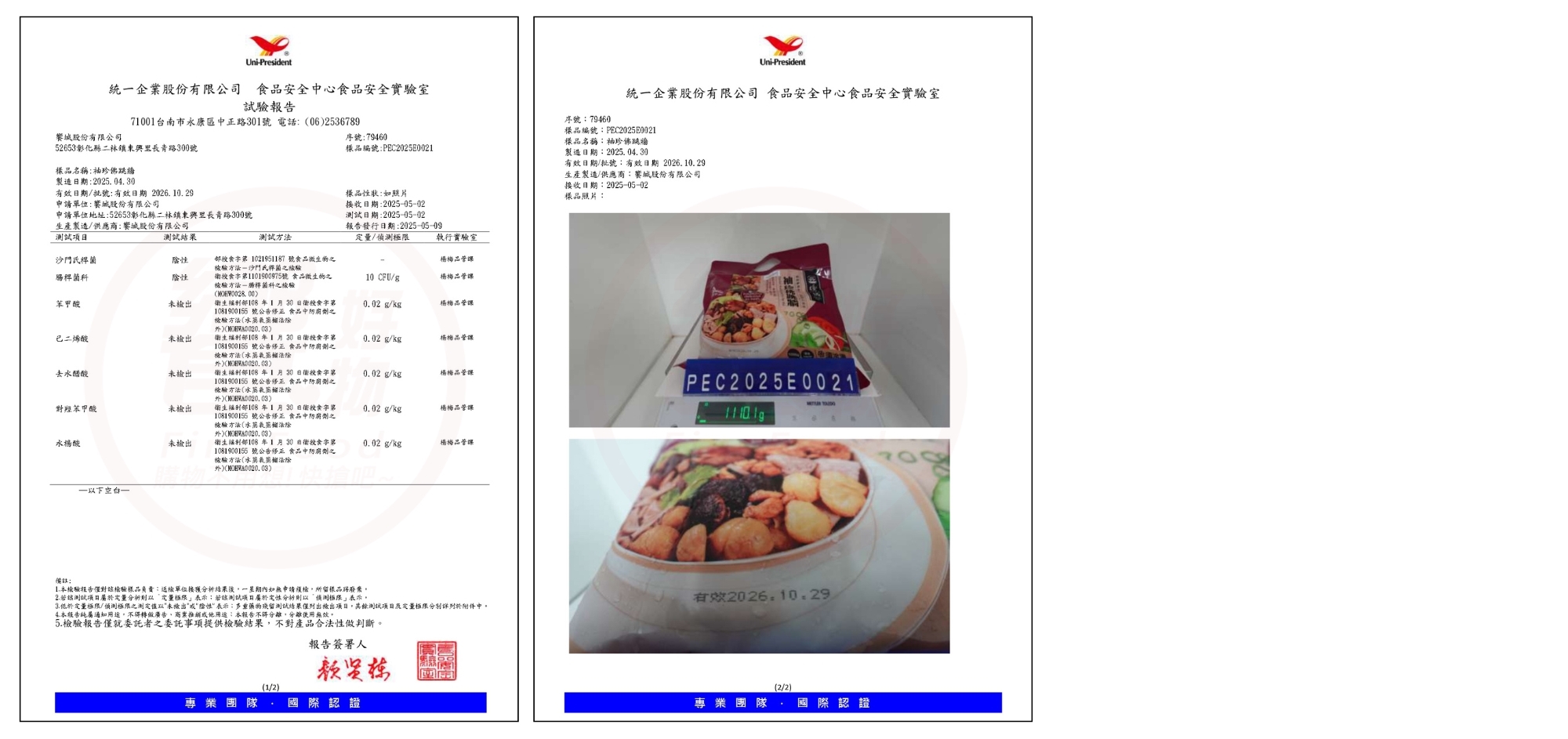 「我們堅持嚴格把關、維持最高品質,時刻更新檢驗報告,確保您能即時查閱最新資訊,讓您安心享受美味。」