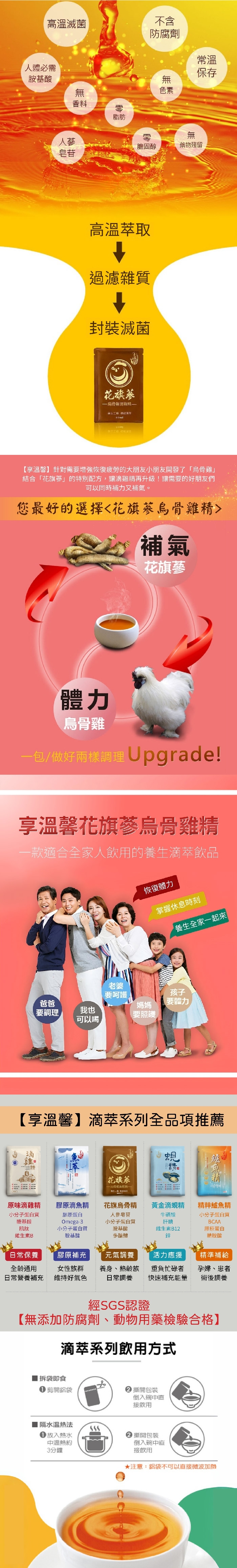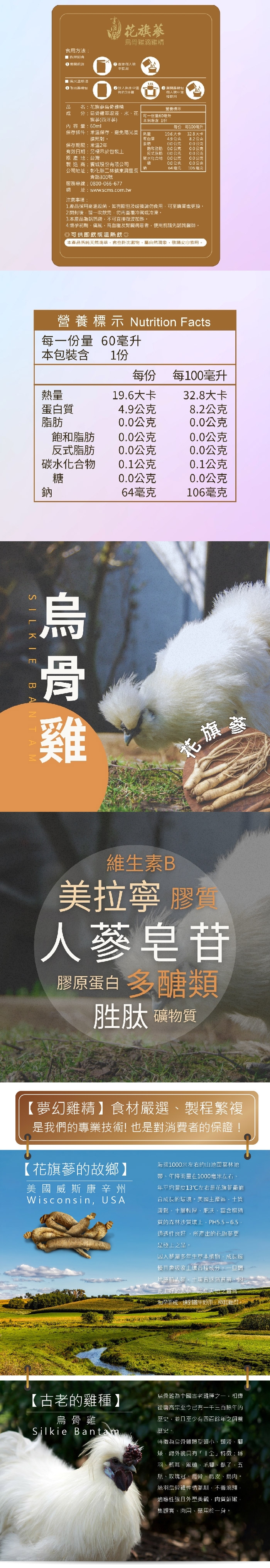 • 花旗蔘添加、烏骨雞高營養萃取